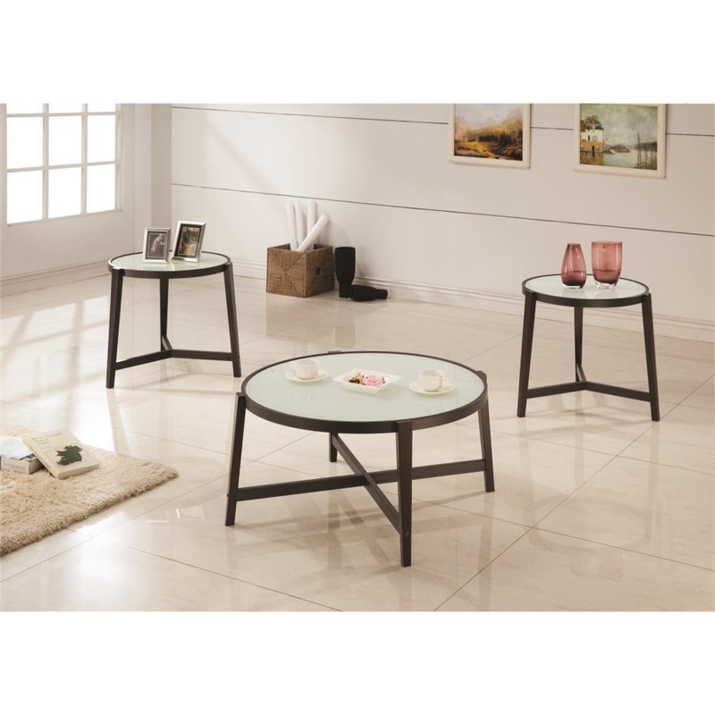 | Coaster 3 Piece Glass Top Coffee Table Set in Espresso |