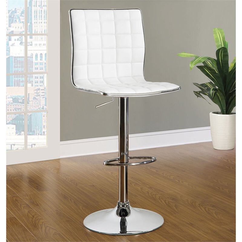 | Coaster - Bar Stools - 122089 - Contemporary styleChrome base Waffle textured seatWaffle textured backFootrest for comfortSeat height adjustableSpecifications:Overall Product Dimensions: 40.75” H x 18” W x 18” DSeat Dimensions: 15.25” D