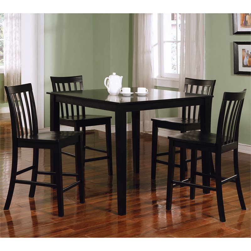| Coaster - Dining Sets - 150231BLK - Black Finish; Set is constructed from Wood Veneers & Solids; Set has clean lines, smooth straight edges, square tapered legs; Dining chairs have wood seats with high, slatted backs; Dining table is counter Height . Specifications: Table Dimensions: 42""L x 42""W x 36""H ; Chairs Dimensions: 16.5""W x 20""D x 40""H .