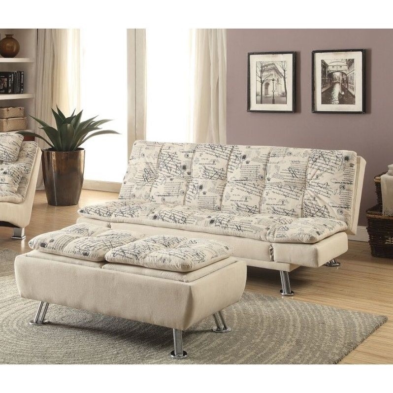| Coaster - Sofa Sets - 30042123SET - Coaster Kay Convertible Adjustable Armrests Sofa Bed in OatmealOatmeal, cream fabric with French Script Pattern; Adjustable Armrests; Sturdy metal leg support; Easy to convert into bed. Specifications:Sofa Dimensions: 33.5"" H x 37"" W x 73"" D; Sofa Bed Dimensions: 17.25"" H x 45"" W x 73"" D. Coaster Olson Fabric Ottoman in BeigeFinish: BeigeMaterial: FabricStyle: CasualSpecifications:Overall Product Dimensions: 18.75"" H x 23"" W x 44.5"" DProduct Weight: 59.4 lbs