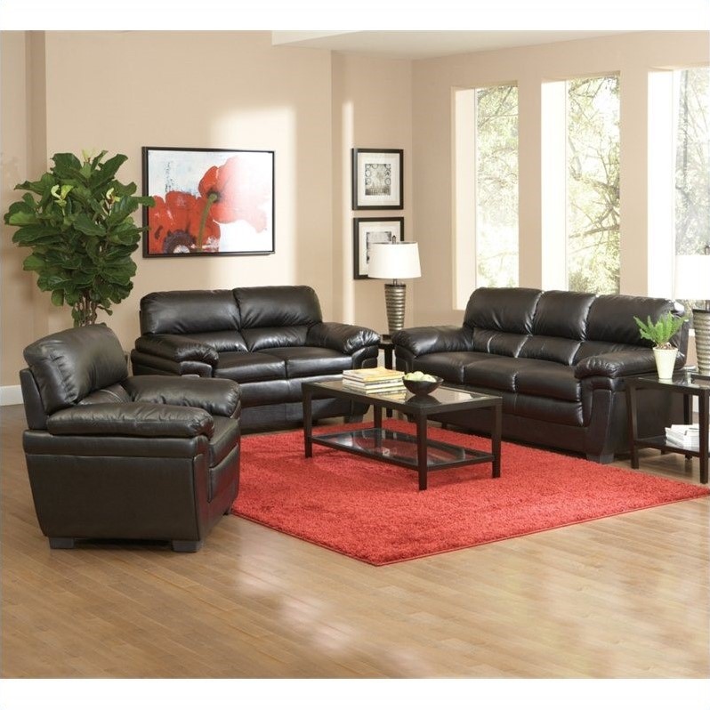 | Coaster Fenmore 3 Piece Casual Leather Sofa Set in Black |