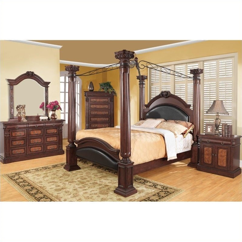 | Coaster - Bedroom Sets - 202201XXPKG4 - Coaster Grand Prado Nightstand in Warm Cherry FinishWarm brown cherry finishDecorative bail handlesMade from Pine solids and cherry veneersTraditional styleOne Drawer and Two DoorsMetal on metal glidesEnglish dovetailSpecifications:Overall product dimensions: 31""H x 31""W x 18""DCoaster Grand Prado Dresser in Warm Cherry FinishWarm brown cherry finishDecorative bail handlesMade from Pine solids and cherry veneersTraditional styleTwelve DrawersMetal on metal glidesEnglish dovetailSpecifications:Overall product dimensions: 38""H x 64""W x 19""DCoaster Grand Prado Mirror in Warm Cherry FinishWarm brown cherry finishMade from Pine solids and cherry veneersTraditional styleVertical MirrorSpecifications:Overall product dimensions: 50.5""H x 45""W x 3.25""DCoaster Grand Prado Chest in Warm Cherry FinishWarm brown cherry finishMade from Pine solids and cherry veneersTraditional styleDecorative bail handlesSix DrawersMetal on metal glidesEnglish dovetailSpecifications:Overall product dimensions: 53.5""H x 41""W x 19""DCoaster Grand Prado Bed in Warm Cherry FinishWarm brown cherry finish; Made from Pine solids and cherry veneers; Traditional style; Requires Boxspring. Specifications:Queen Dimensions: 86.75"" H x 72.5"" W x 88.75"" D; King Dimensions: 86.75"" H x 86.5"" W x 98"" D; California King Dimensions: 86.75"" H x 88.5"" W x 102"" D.