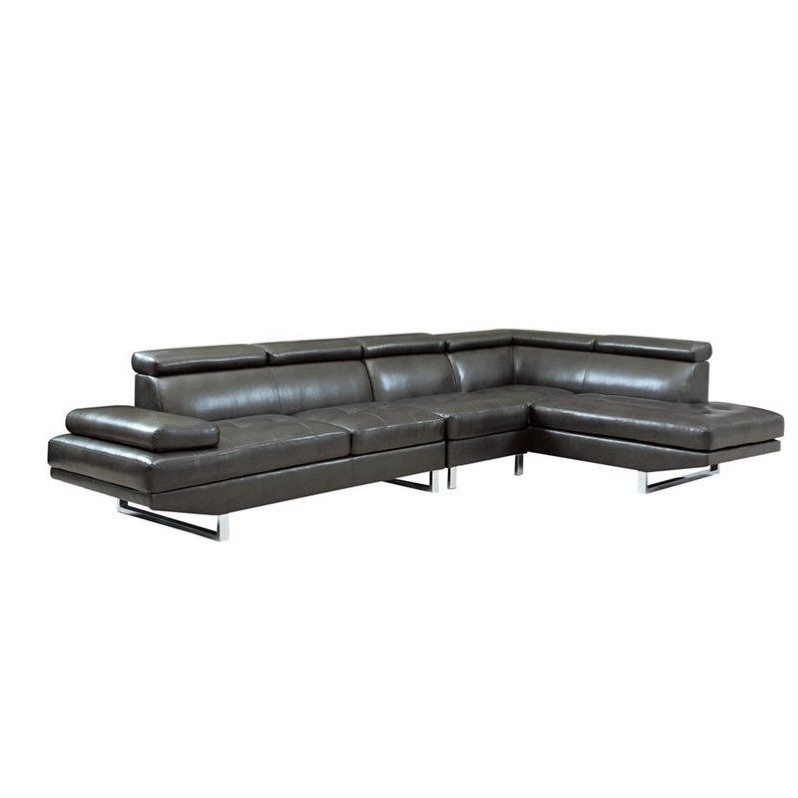 | Coaster Leather Adjustable Headrest Corner Sectional in Charcoal |