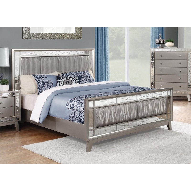 Coaster Leighton California King Mirrored Panel Bed in Mercury
