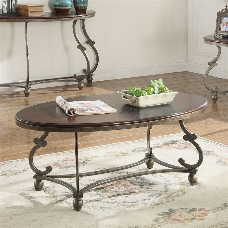 | Coaster Oval Coffee Table in Cherry Brown and Antique Pewter |