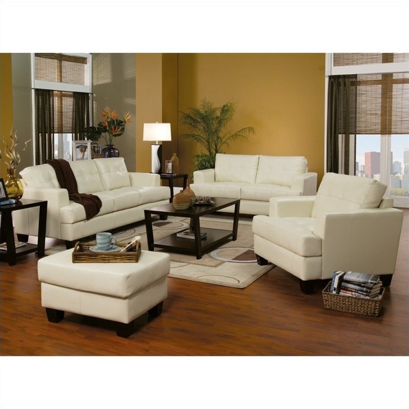 | Coaster - Sofa Sets - 50169X3PCPKG - Coaster Samuel Contemporary Leather Sofa 100% Cream Bonded Leather Upholstery ; Hardwood frame ; Webbed back ; Sinuous spring base ; Pocket coil cushion ; Wood legs Specifications: ; 86""L x 38""W x 36""H . Coaster Samuel Contemporary Leather Loveseat 100% Cream Bonded Leather Upholstery ; Hardwood frame ; Webbed back ; Sinuous spring base ; Pocket coil cushion ; Wood legs Specifications: ; 67.5""L x 38""W x 36""H . Coaster Leather Club Chair in Ivory 100% Cream Bonded Leather Upholstery ; Hardwood frame ; Webbed back ; Sinuous spring base ; Pocket coil cushion ; Wood legs Specifications: ; 42""L x 38""W x 36""H .