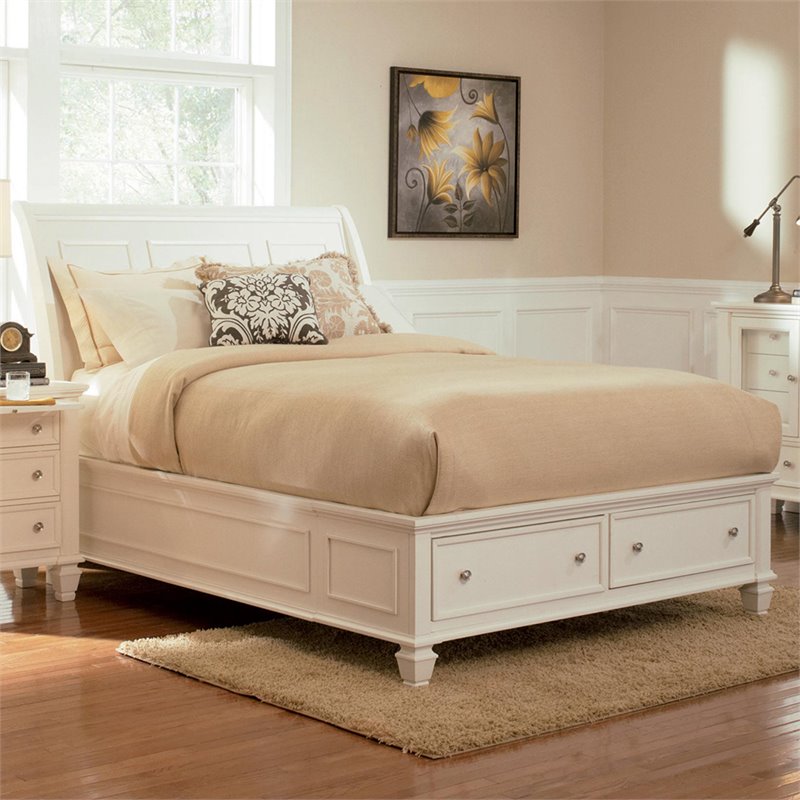 | Coaster Sandy Beach Sleigh Bed with Storage Footboard in White-California King |