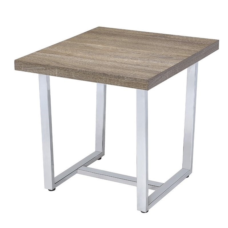 | Coaster - End Tables - 704187 - Finish: Weathered TaupeMaterial: Wood and MetalContemporary Style U-Shaped Chrome Base With Support TrestleSpecifications:Overall Product Dimension: 23""H x 23.5""W x 23.5""DProduct Weight: 20 lbs