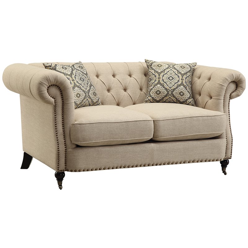 Coaster Trivellato Button Tufted Loveseat in Oatmeal